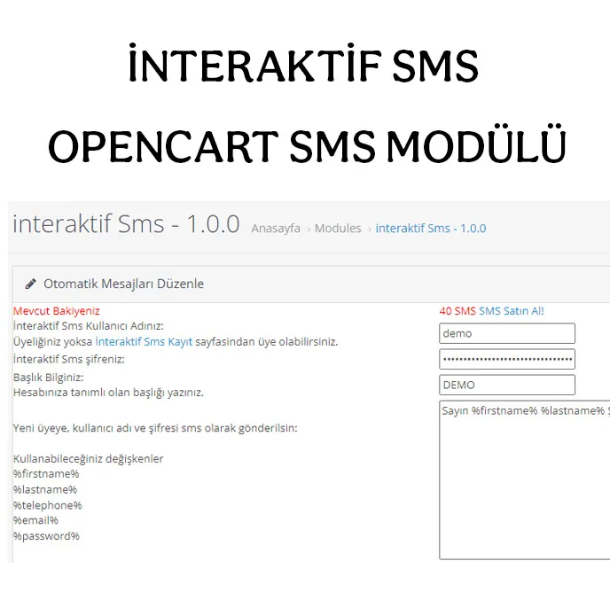 - OPENCART SMS EKLENTİSİ HAZIR.